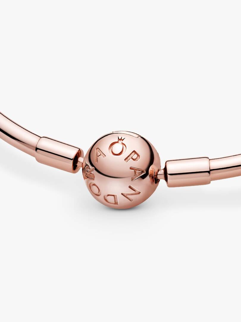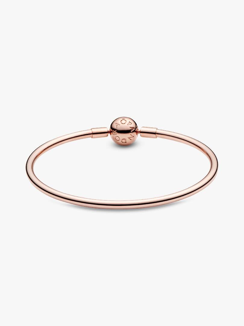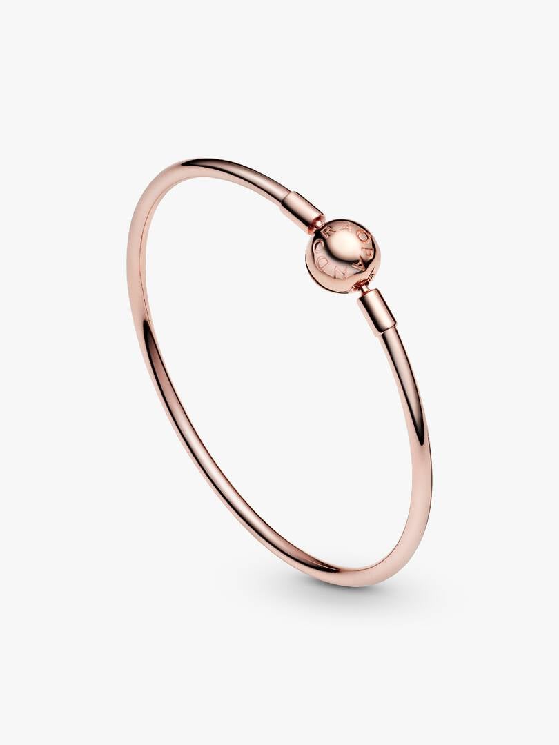The simple things in life often are the greatest gifts. Like this minimalist brand Moments Bangle, carefully plated with 14k rose gold. The sleek style is stamped on the ball clasp with our logo – a subtle way to chann