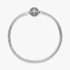 Bring timeless charm to your look with the brand Moments Halo Snake Chain Bracelet. Hand-finished in sterling silver, the bracelet’s clasp features a large sparkling clear cubic zirconia center stone surrounded by a do