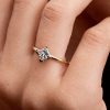 diamond. The unique asymmetric prong setting opens the stone to the light for ultimate sparkle. A symbol of the unique light within all of us, this eye-catching lab-grown diamond ring is a piece to be worn and treasured for years to come – by you or someone who brings light into your world. Each brand Lab-grown diamond is treated with a post-growth color enhancement called annealing.