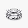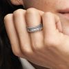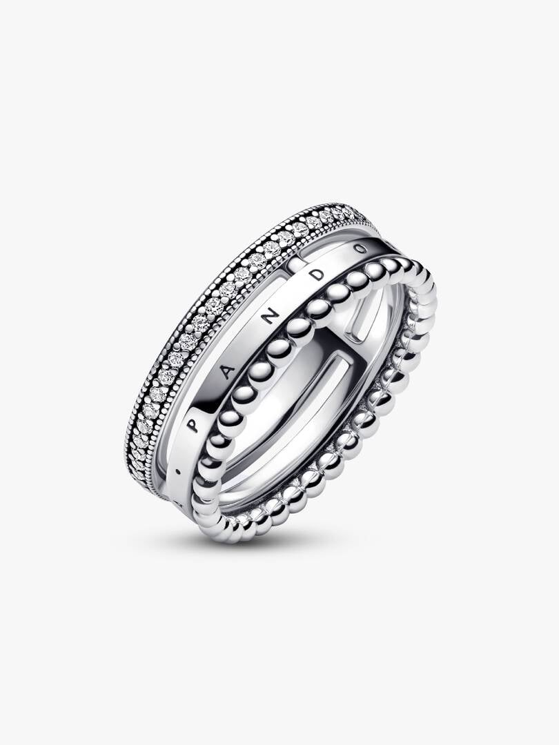 A sophisticated finishing touch to any outfit. Crafted in sterling silver, the brand Signature Logo Pavé & Beads Ring features a multi-textured look with contrasting bands of beads and pavé. The brand logo is inscrib