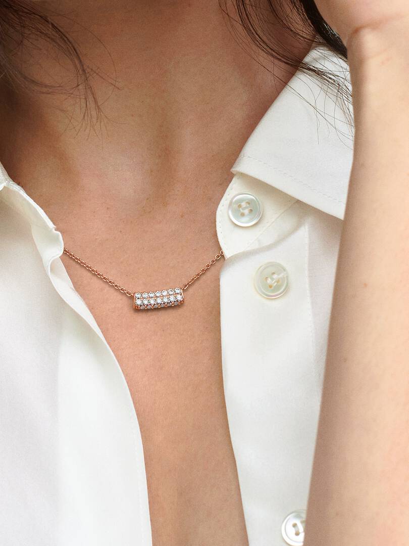 brand Timeless Pavé Double-row Bar Collier Necklace | Rose gold plated