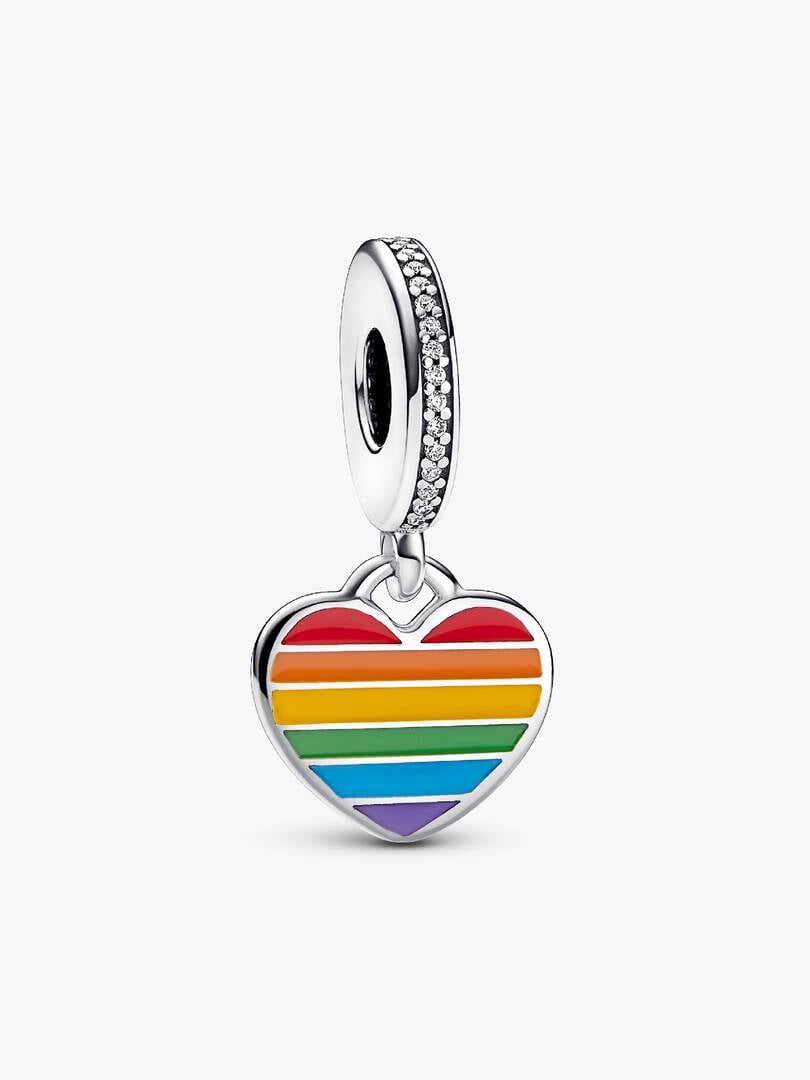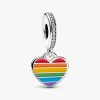 Celebrate love and unity with the Pride Rainbow Heart Dangle Charm. This sterling silver charm features a heart-shaped disc with rainbow enamel stripes on one side, inspired by the traditional rainbow-striped Pride flag.