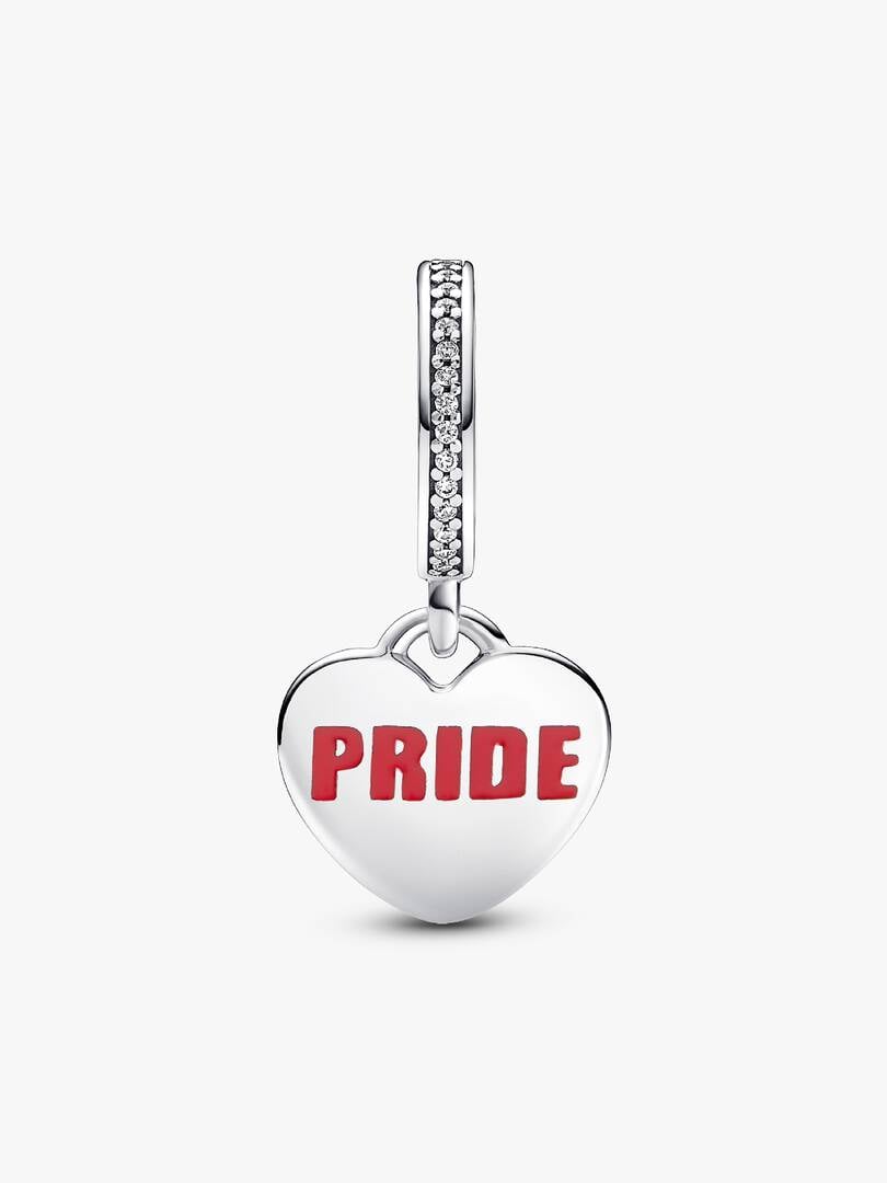 The other side displays the word “PRIDE” with bright red enamel. A row of pavé on the bail adds sparkle. Wear it on your brand Moments bracelet or charm holder to express pride and support for the LGBTQ+ community – a symbol of love for all.