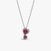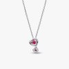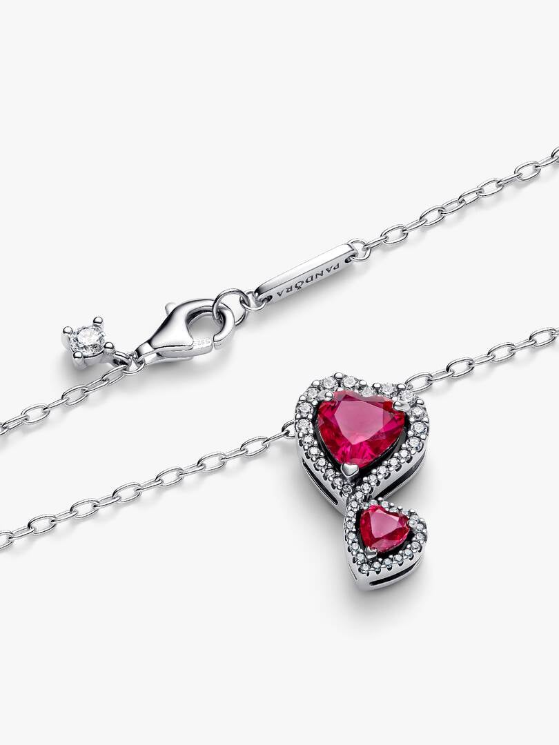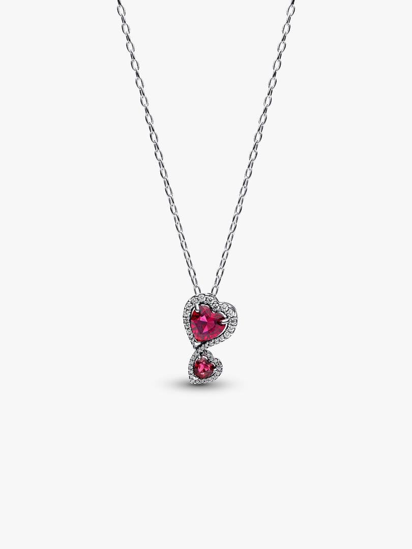 Wear a symbol of connection with the Red Halo Hearts Pendant Necklace, crafted in sterling silver. This sparkling piece features two prong-set heart-cut red man-made crystals, beautifully accented by a halo of pavé stone