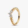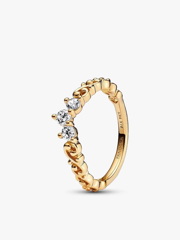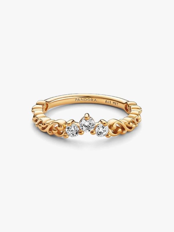Add a touch of royalty to your everyday looks with the Regal Swirl Tiara Ring. Crafted with a 14k gold plating, this aristocratic piece features a tiara decorated with three sparkling stones and swirling filigree. Crown