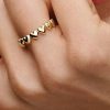 Give a gift from the heart with this 14k gold-plated ring. Expertly crafted with a row of hearts making up the band, this romantic design looks equally beautiful worn on its own or layered with contrasting brand rings.