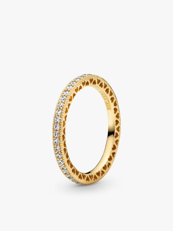 This striking 14k gold-plated Sparkle & Hearts Ring lends a beautiful glow to your everyday look thanks to its combination of shimmering cubic zirconia and radiant metal. Cut-out hearts complete the design to create a ve