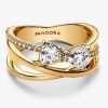 nd features a crossover design with one row of sparkle and three polished lines. Perfect for special occasions and every day, this ring always adds something extra to an outfit.