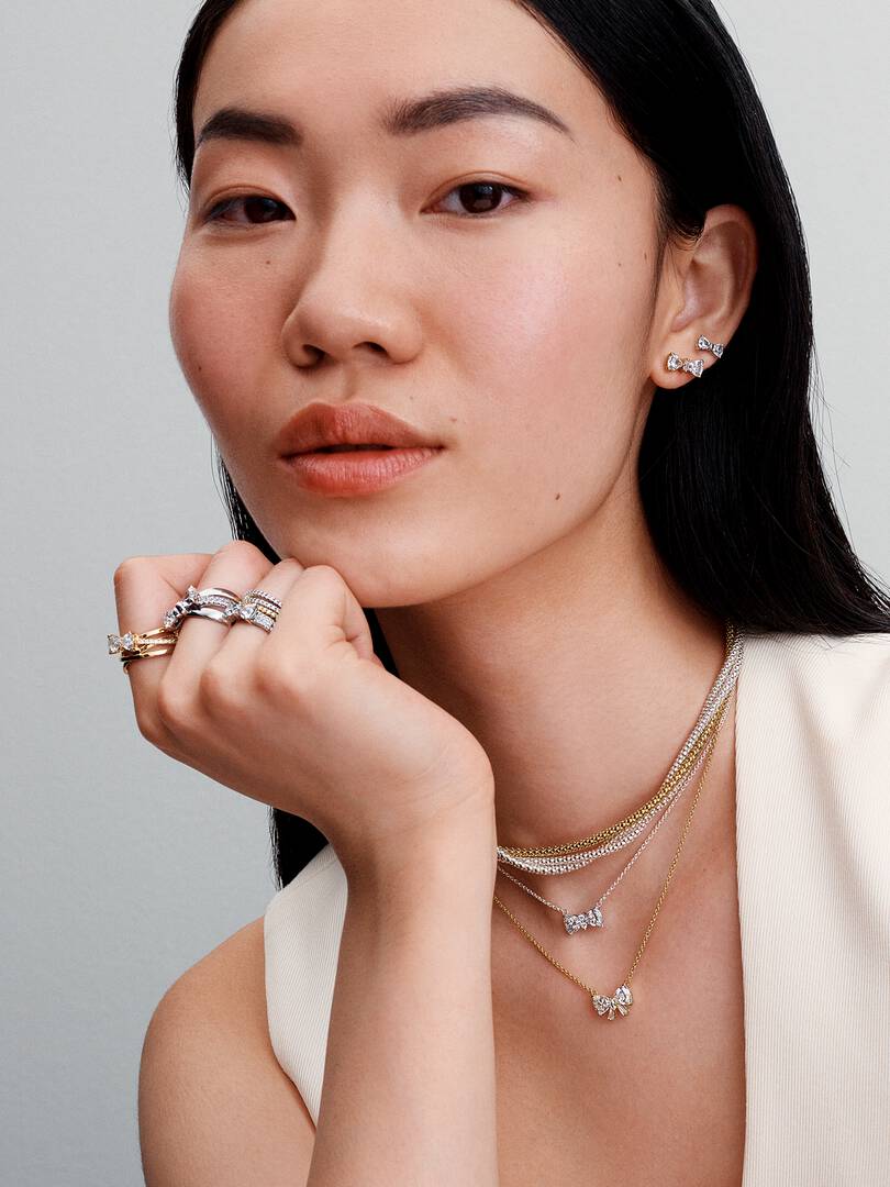 to create a bow shape when arranged, ready to tie all your looks together. Wear this collier necklace for a touch of festive sparkle, or wrap it with love for the one who’s top of your gift list.