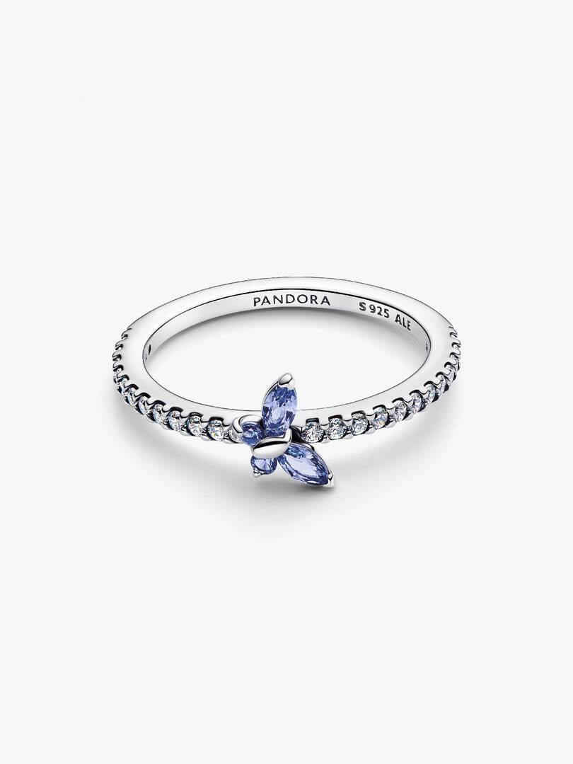 Add subtle sparkle to your look. This sterling silver ring features blue and clear cubic zirconia with a butterfly set at an angle as a symbol of transformation and beauty.