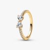 A dainty bow design formed by two heart-shaped stones sits at the centre of this sparkling ring, blending sweetness and elegance for a striking look.