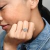 al stone surrounded by two sparkling halos. The outer halo sits slightly lower than the inner halo, with space in between them to add depth to the design. Treat your loved one to this ring and matching earrings for an eye-catching combination.