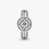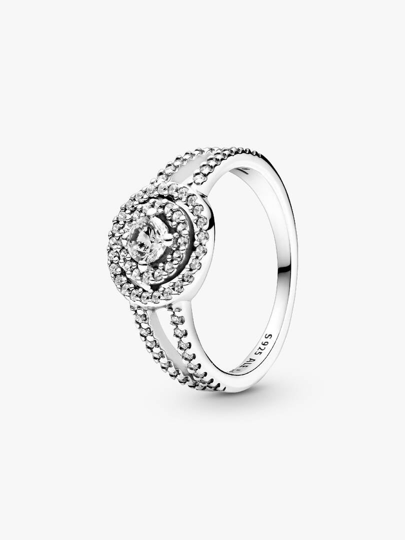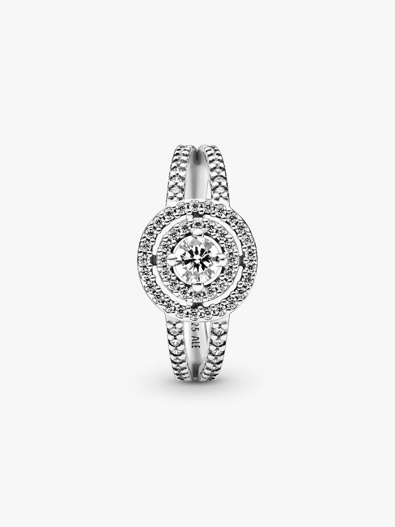 Give the gift of classic style with the Sparkling Double Halo Ring. Hand-finished in sterling silver, this shimmering piece is decorated with clear cubic zirconia. The statement centerpiece features one big, raised centr