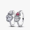 ear cubic zirconia with a vibrant red man-made crystal, while the other features two clear stones for a classic look. Crafted in sterling silver, both rings are designed to symbolize the harmony and unwavering support shared between two souls. Whether worn as a stack or solo statement, this set adds a touch of love and elegance to any occasion.