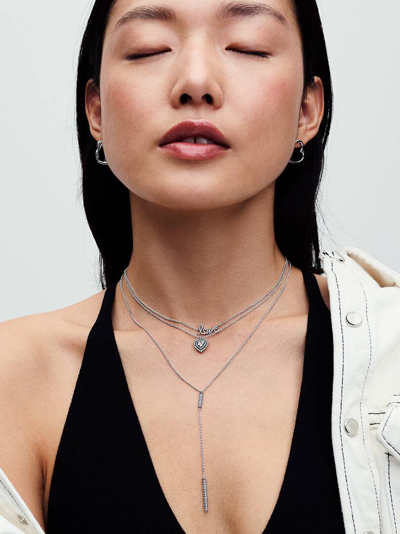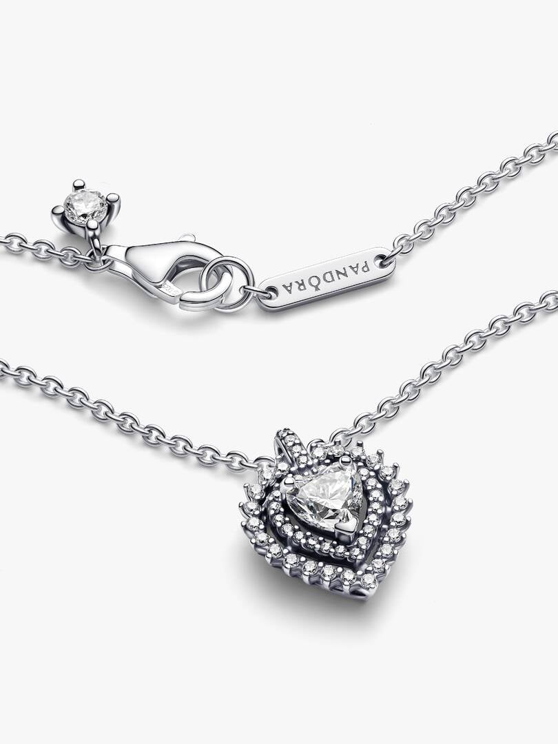 vels around the stone adds a sense of depth and dimension. The heart pendant is not detachable and slides freely along the chain, which is adjustable to three lengths. Pair it with the matching Sparkling Heart Halo Stud Earrings to create an elevated and modern look.