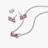 This sterling silver set features bow-shaped pink heart stones in a necklace and earrings. Hand-finished and adjustable, it’s a sweet gift for someone who brings beauty to every moment.