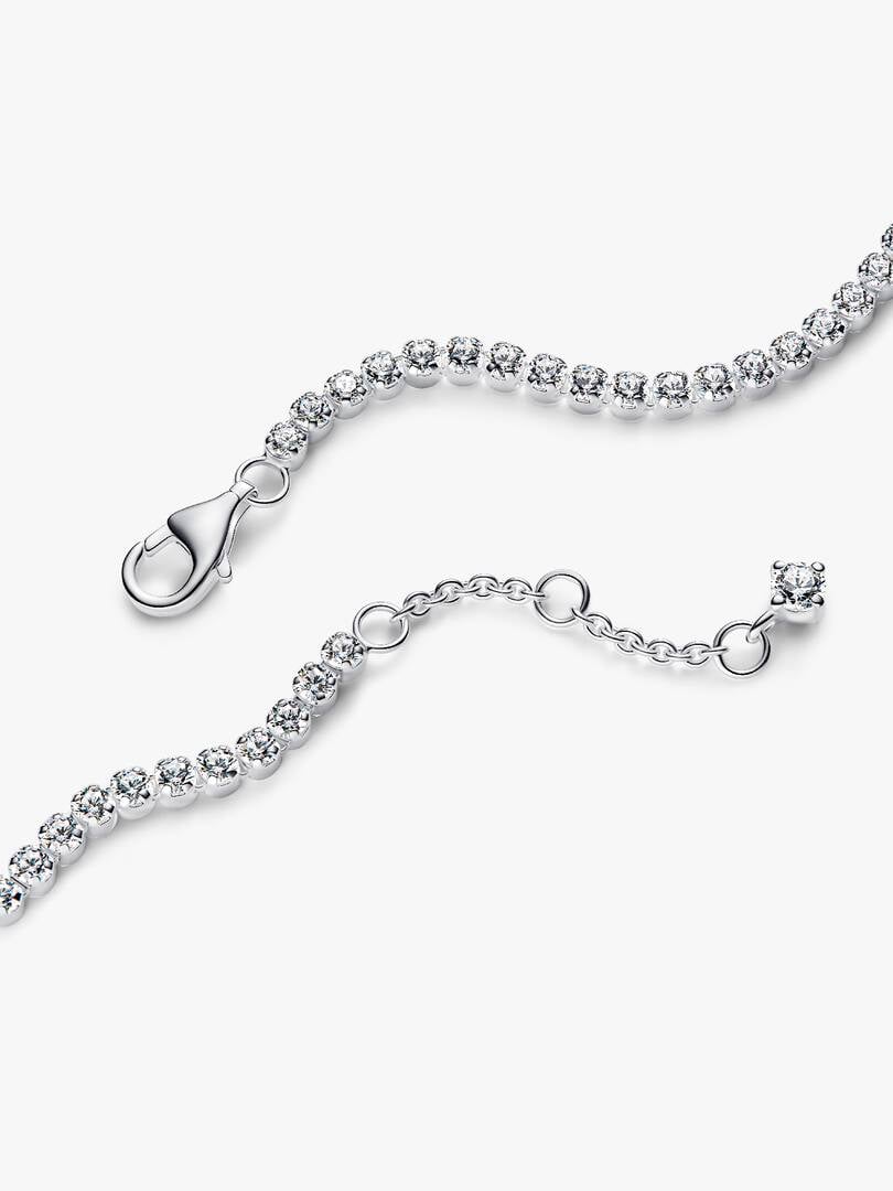 Game, set, match. Elevate your jewelry with this chic sterling silver tennis bracelet, set with brilliant stones all the way around and up to the clasp for a brilliant finale.