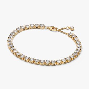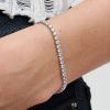 Tennis bracelets, anyone? This sterling silver Sparkling Tennis Bracelet features squared collets and is decorated with a bold line of clear cubic zirconia to make a statement fit for any occasion. Wear it on its own or