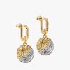 Keep rising. This mixed metal medallion features a moon and stars motif with the Latin mantra ‘AD ASTRA PER ASPERA’. Style it on our front-facing openable stud earring for a personal take on meaning and shine.