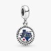 Add a piece of the Lone Star State to your style with this sterling silver dangle charm. Featuring a state-shaped silhouette in glossy blue enamel, a small red heart underneath, and “Texas” beautifully scripted across in