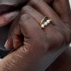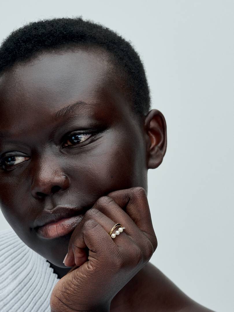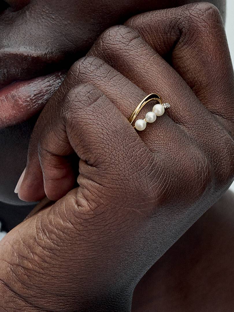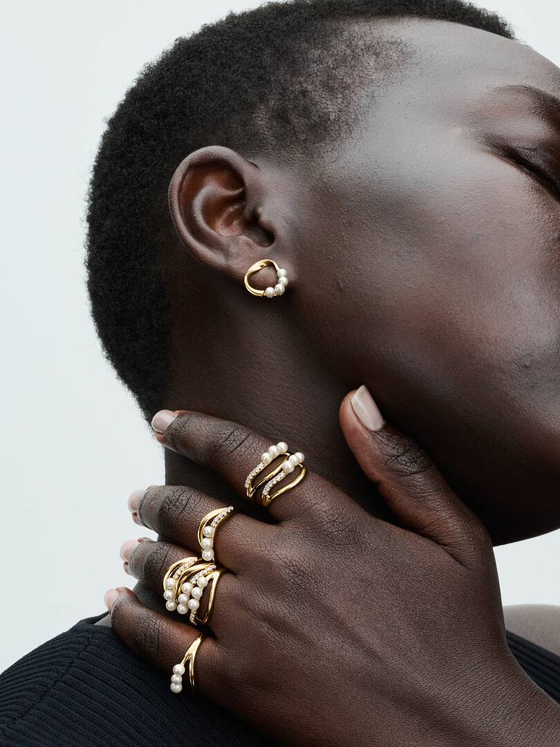The Treated Freshwater Cultured Pearl & Organically Shaped Double Band Ring puts a fresh twist on a classic style. This 14k gold-plated ring creates an illusion of two bands that connect at the back of the finger. One ba