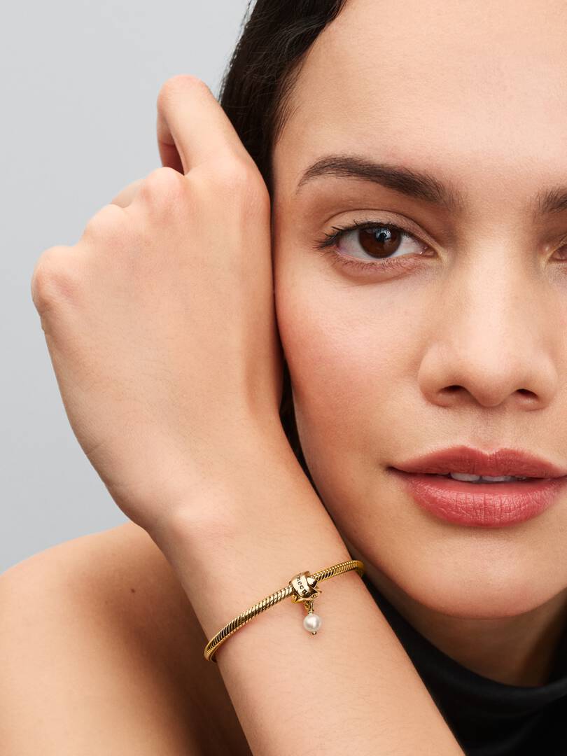 Make every day special with the Treated Freshwater Cultured Pearl Ribbon Charm. This 14k gold-plated charm features a treated freshwater cultured pearl dangling from a ribbon with black enamel writing that reads “Someone