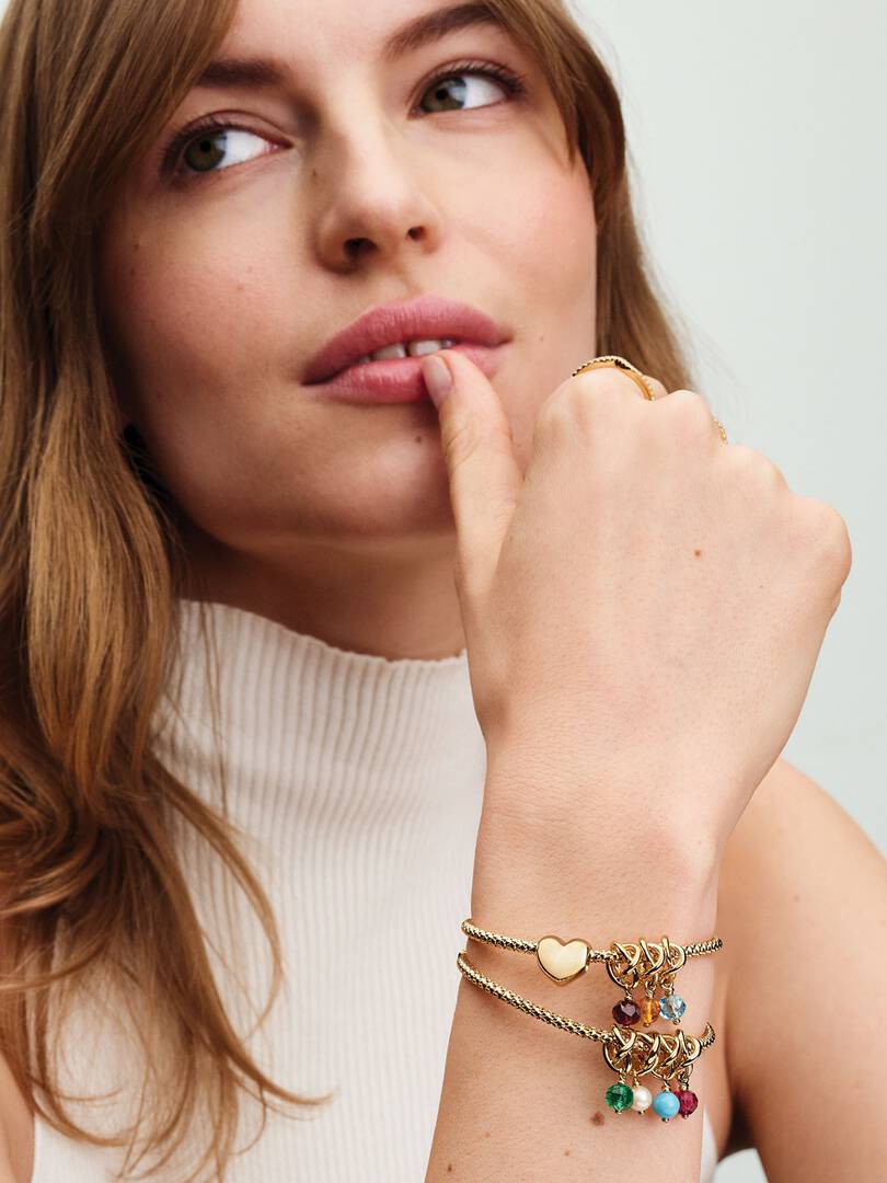 Wear a symbol of forever, that’s personal to you. This 14k gold-plated dangle charm is made up of a triple knotted circle that intertwines to resemble an infinity sign. The twist carries a faceted capri blue man-made cry