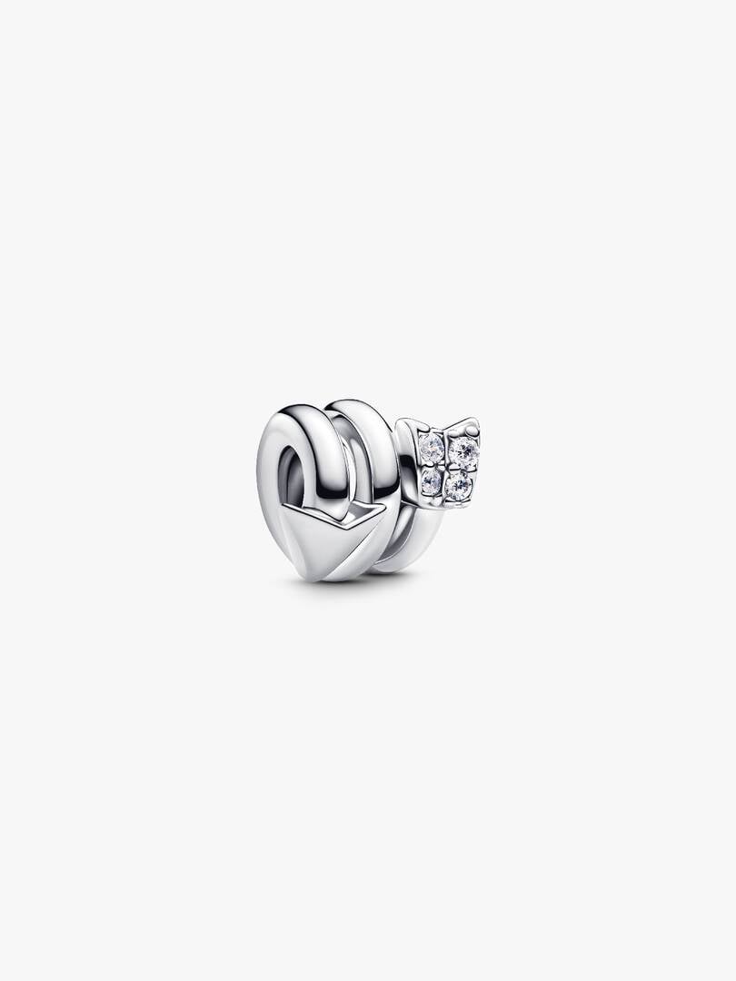 Feel hit by Cupid’s arrow with this romantic charm. Crafted from sterling silver, this meaningful piece features four bead-set cubic zirconia along the bow, adding a touch of sparkle. With its pointed tip and twisting de