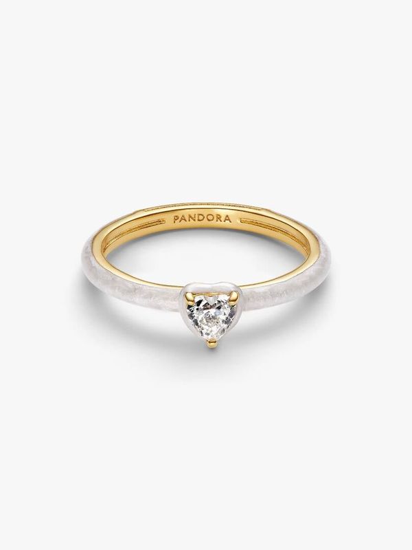 Wear a universal symbol of love and connection. This 14k gold-plated solitaire ring features a sparkling heart-shaped stone wrapped in shimmering enamel.