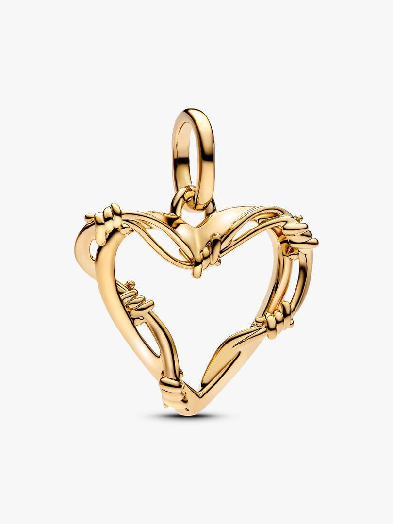 Give yourself a little tough love with the Wire Heart Dangle Charm. Barbed wire swirls around the outline of an open heart, hand-finished in 14k gold plating. Whether you’re guarding your heart, protecting your love or p