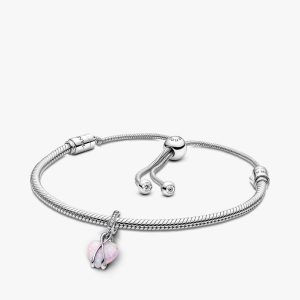 Mom Opalescent Heart Dangle Charm Bracelet Set | Sterling silver