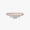 The slender band of this embellished Clear Three-Stone Ring makes it perfect for stacking with similar styles. Plated with 14k rose gold for a blush pink finish, it channels the look and feel of vintage styles. This clas