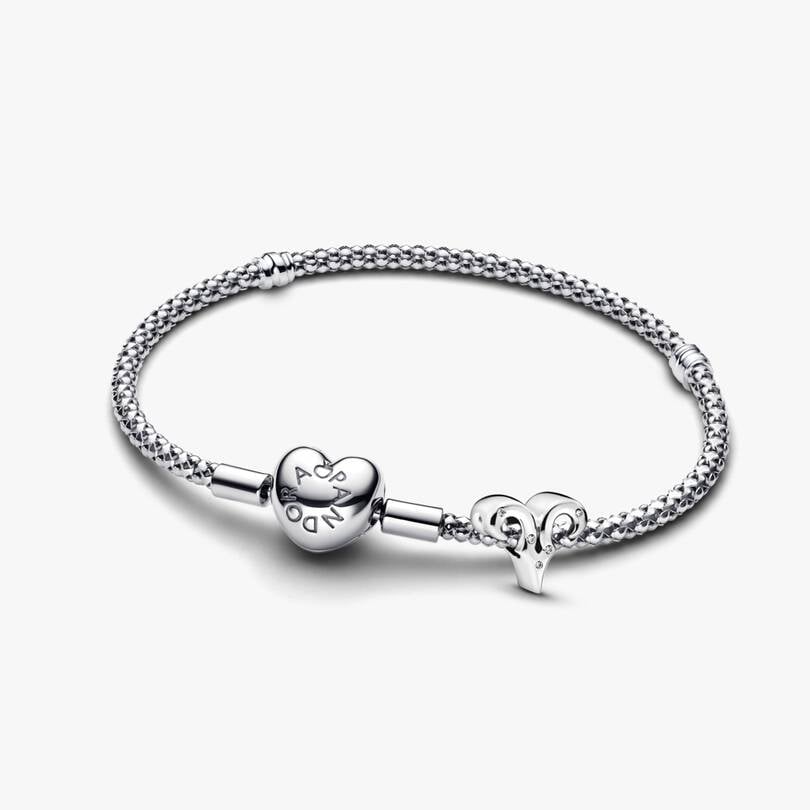 Show off your Aries pride with the Aries Zodiac Charm Studded Bracelet Set. This sterling silver bracelet features a studded chain and a celestial Aries charm with sparkling cubic zirconia and star detailing.