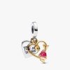 The Arrow of Love Bracelet and Engravable Charm Set is a perfect pairing for those who wish to celebrate love. The Engravable Heart & Arrow Double Dangle Charm features a sterling silver heart with the engraved message “