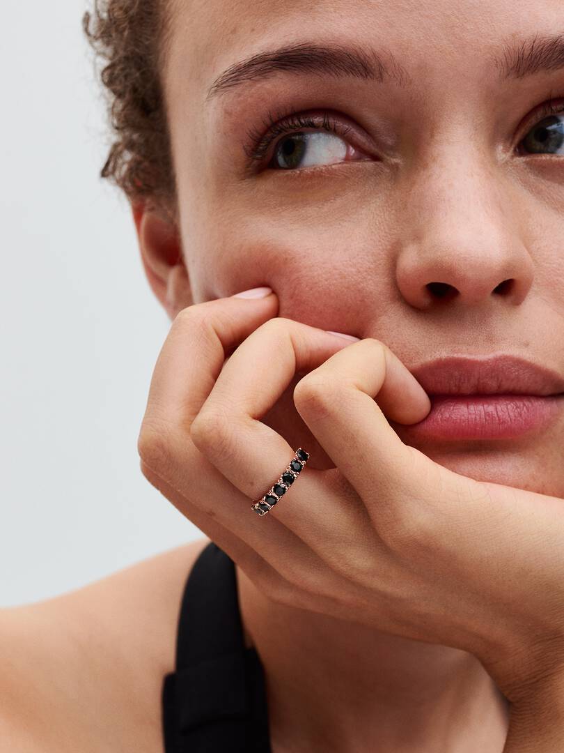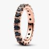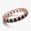 Indulge in timeless elegance with the Black Sparkling Row Eternity Ring from brand . Crafted in sterling silver and plated with 14k rose gold, this ring features 19 black man-made crystals. The eternity row design allow