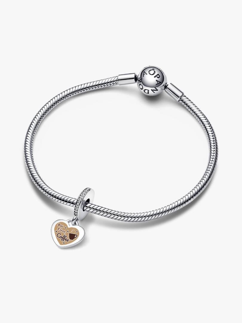 For the caffeine lover at heart, this sterling silver dangle charm shines with cubic zirconias and can be engraved for a personal, coffee-fueled touch.