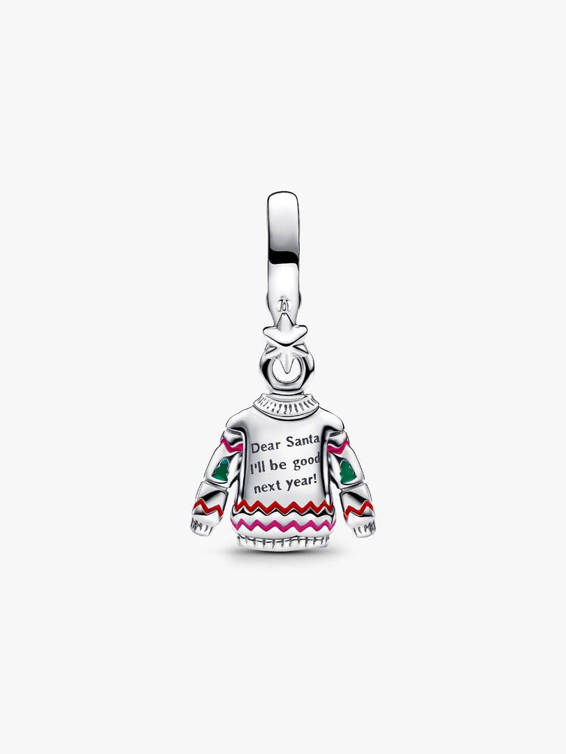 Cosy up your look with our Christmas Sweater Dangle Charm. Crafted in sterling silver with sparkling stones and enamel details, the charm also features the engraved messages “Dear Santa I’ll be good next year!” and “2024