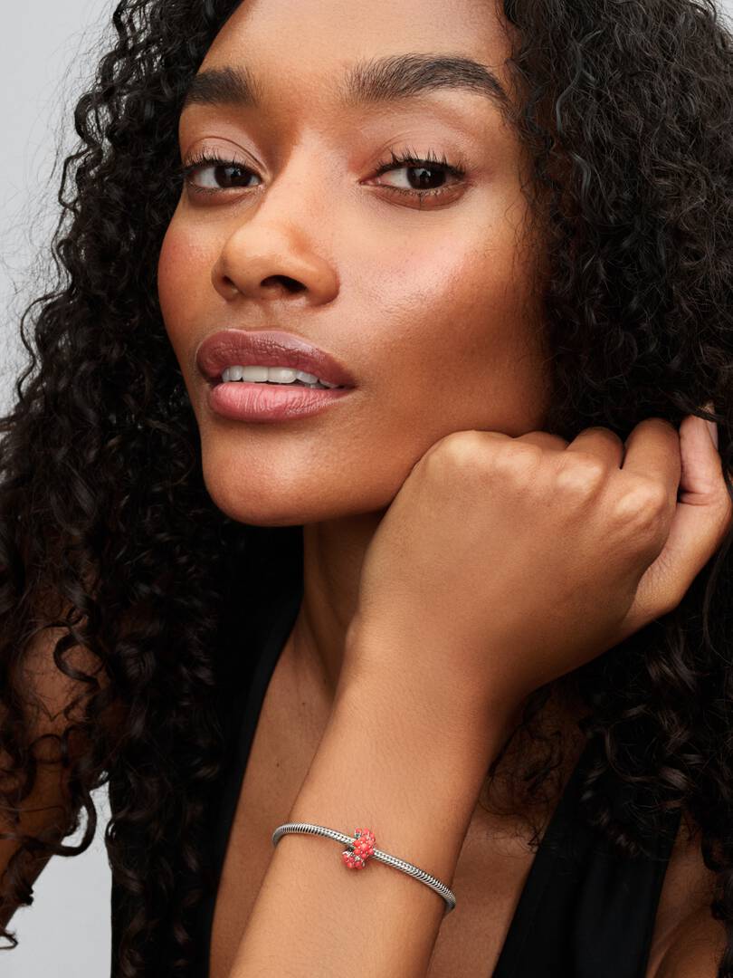 Celebrate the beauty of the ocean with a charm that shines like a summer sunset, featuring clusters of imitation coral and clear cubic zirconia.