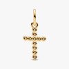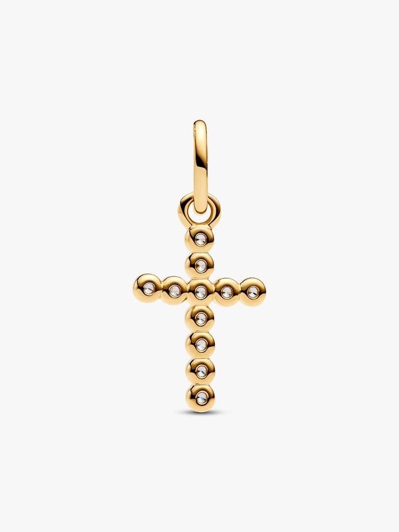Let your faith shine with this symbol of hope and love. Clear sparkling cubic zirconia form a cross set in warm 14k gold plating. Perfect for layering or wearing solo as a meaningful statement piece.