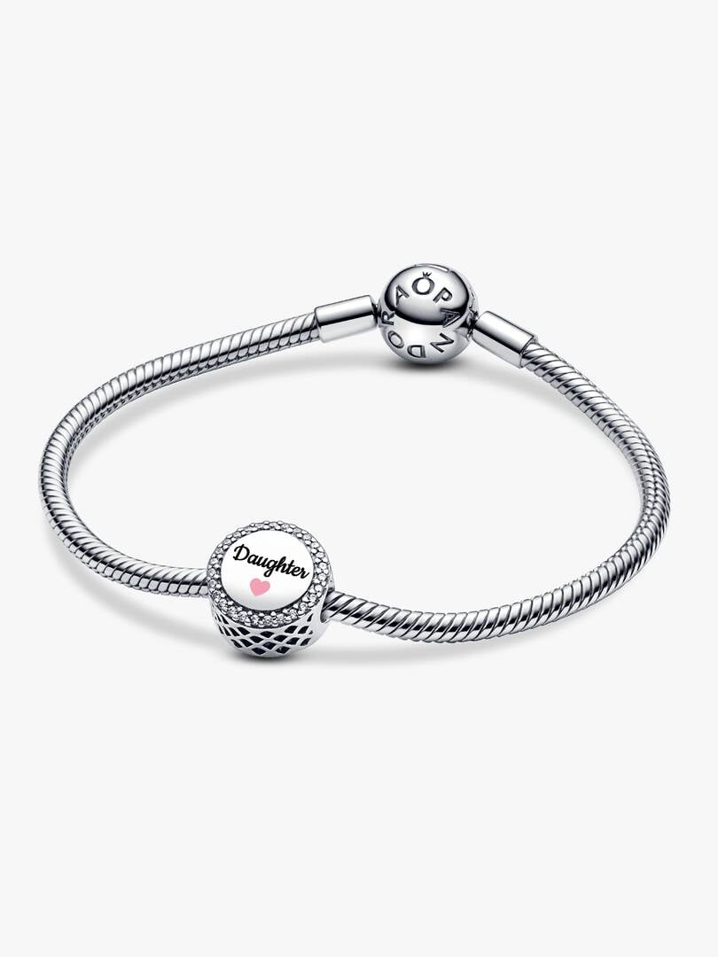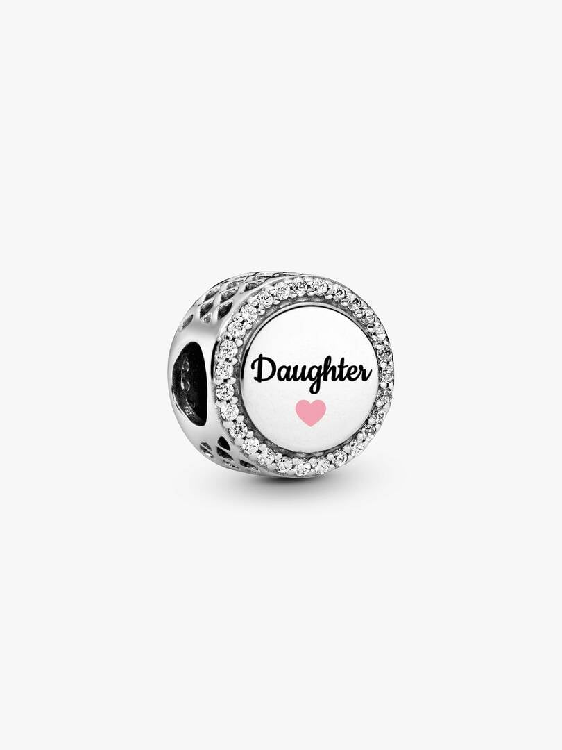 Celebrate your unbreakable bond with this stunning Engravable Daughter Charm. Featuring a dazzling row of pavé cubic zirconia and engraved with “Daughter” and a small pink heart, it’s a heartfelt tribute to your special