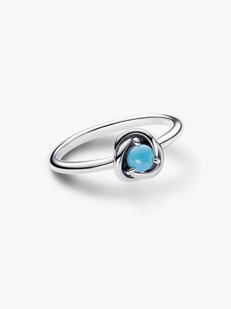 Wear a symbol of forever when you choose the Turquoise Blue Eternity Circle Ring. This sterling silver ring features one blue man-made crystal. The polished band wraps around the center stone in an openwork braided infin