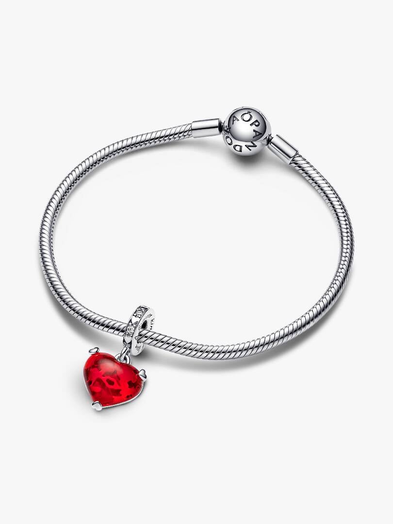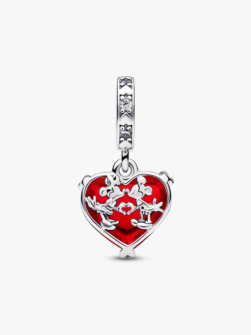 Celebrate love that was meant to be with our Disney Mickey & Minnie Mouse Kiss Red Murano Glass Dangle Charm. Engraved with the message “A forever kind of love”, this sterling silver charm features Disney’s most iconic c
