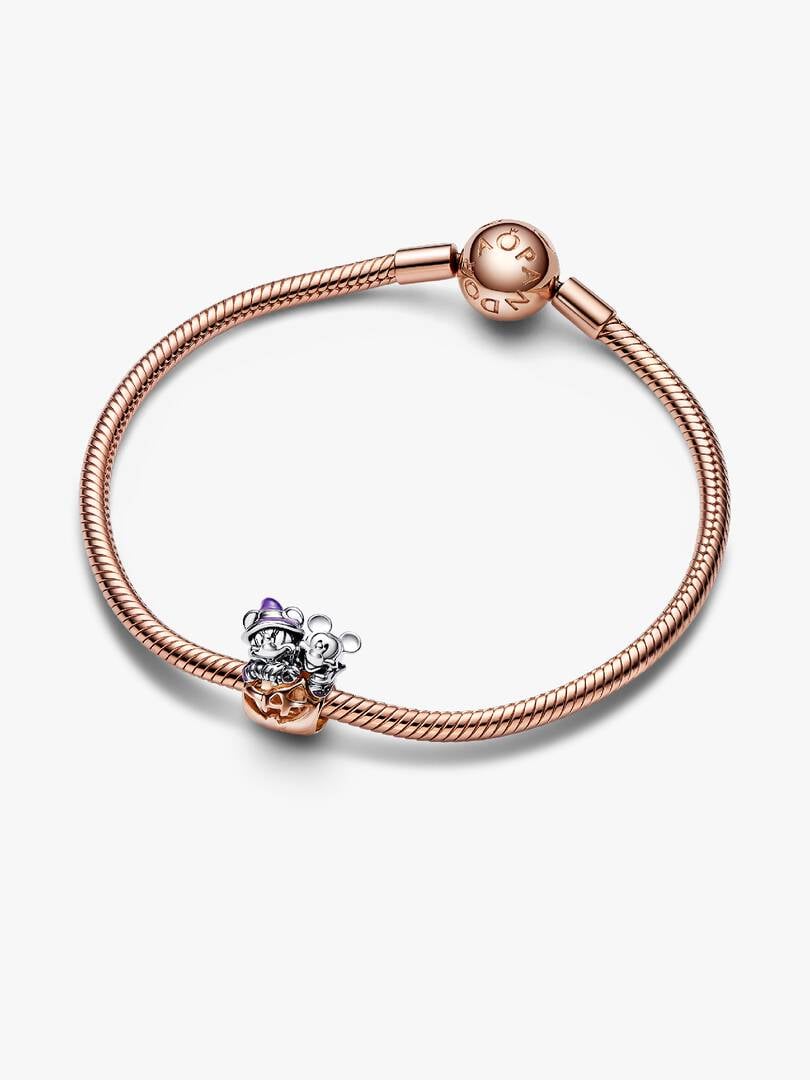 Have a charmed Halloween with the Disney Mickey Mouse & Minnie Mouse Halloween Pumpkin Charm. The 14k rose gold-plated pumpkin design features cut-out and grooved details that create realistic dimension. A sterling silve