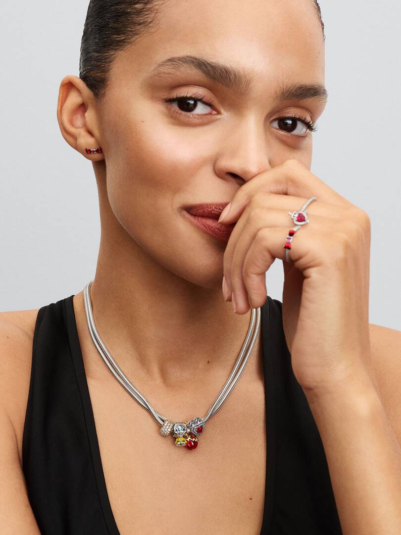 Who’s the fairest of them all? It has to be our stud earrings inspired by Disney’s Snow White – pieces fit for a princess, crafted from sterling silver. Playful enamelled bows feature fuchsia rose man-made crystals. Wear