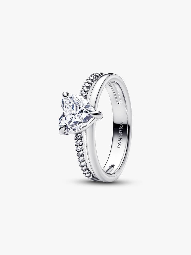 Celebrate love every day with our Double Band Heart Ring. Crafted from sterling silver, the ring features a heart-shaped clear cubic zirconia, set in the center of a polished band and a pavé band, which is adorned with 1