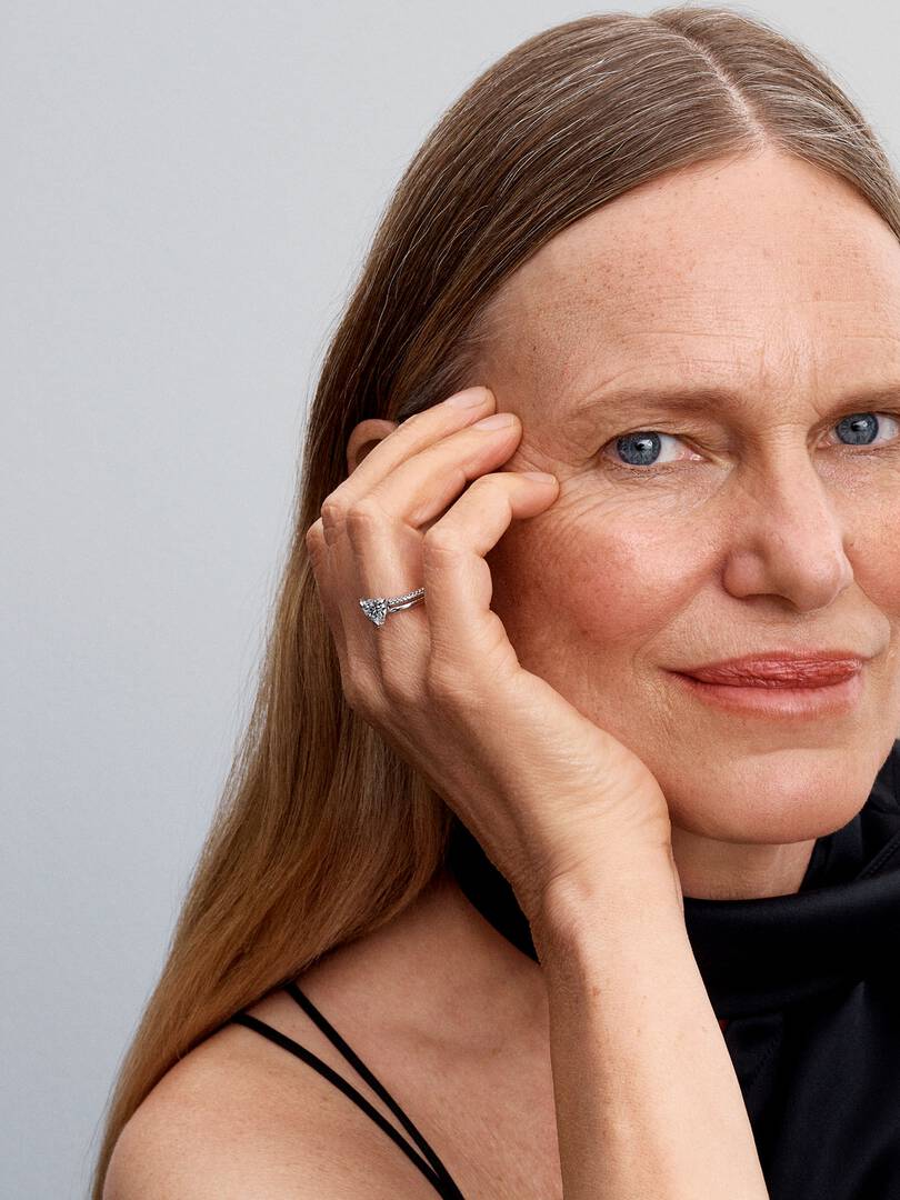 8 bead-set cubic zirconia. The bands are held together by the heart, creating a meaningful ring that celebrates the bonds that connect us.