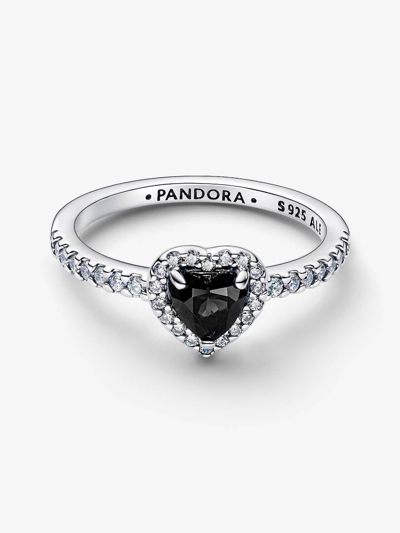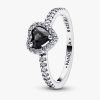 Romance meets edge in the Elevated Black Heart Ring. Sparkling clear pavé surrounds a black heart-shaped man-made crystal in this sterling-silver ring. The black stone is raised in the center of a pavé outline and the to