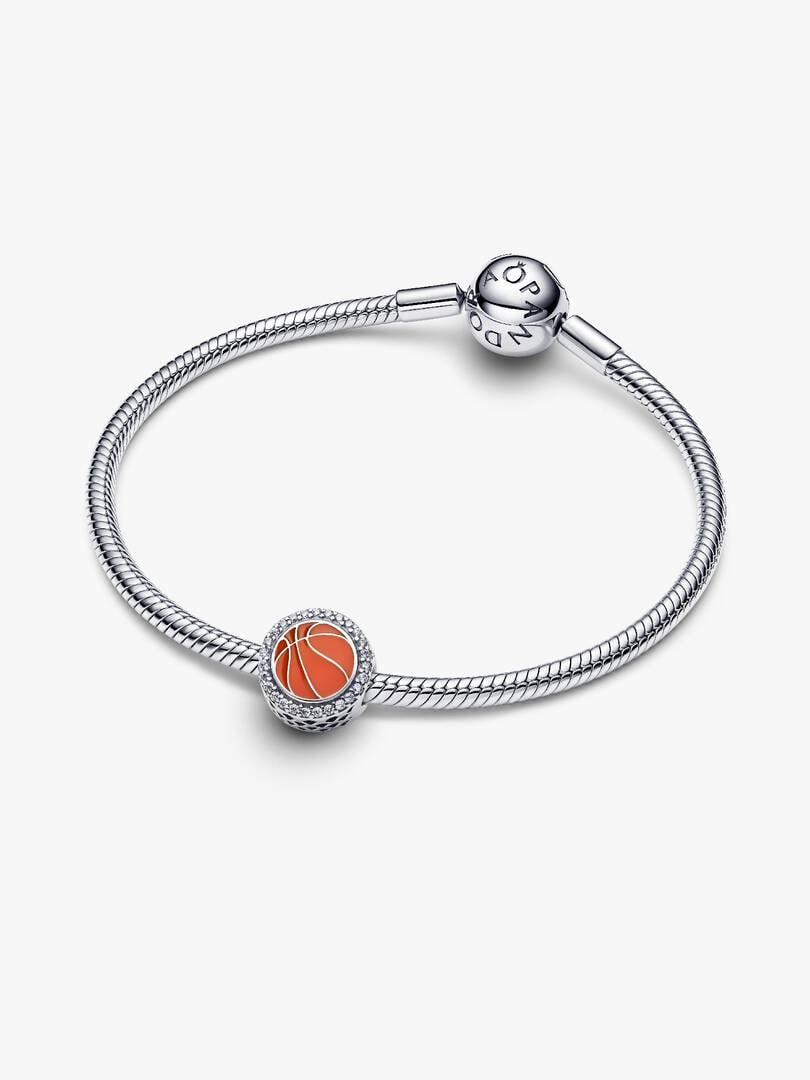 Bring your A-game with this sterling silver basketball charm. One side features an enamelled basketball, while the polished reverse side invites a personal engraving. It symbolises teamwork, perseverance, and the excitem
