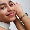 Fall in love with our Celestial Heart Clasp Bangle. Plated in 14k gold, our iconic heart clasp gets a stellar update, featuring a moonlit night sky complete with sparkling stones. Whether you wear it with or without char