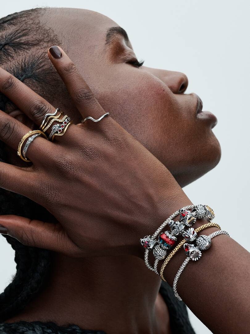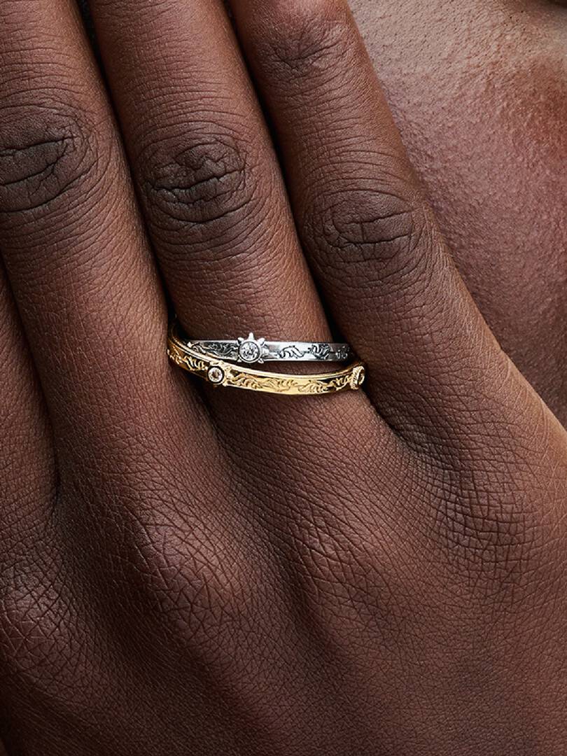 ent of a true astrolabe. The two ring bands are connected by pins, allowing for movement. The intricate detailing adds a mythical touch together with the sparkling cubic zirconia. Inspired by the history of Westeros, it’s the perfect piece for the Game of Thrones fan in your life.